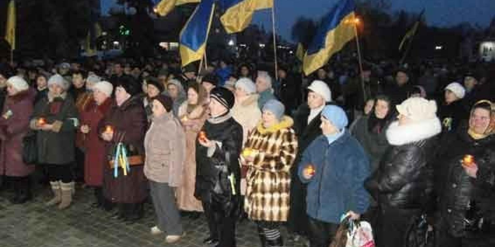 У Ковелі на центральній площі вчора відбулося велелюдне віче, яке носило назву «Разом і до перемоги». Перші ряди мітингувальників тримали в руках запалені свічки і ледве стримували сльози, трохи подалі – державні прапори, на яких почепили жалобні стрічки. Про це повідомляє ПроКовель.