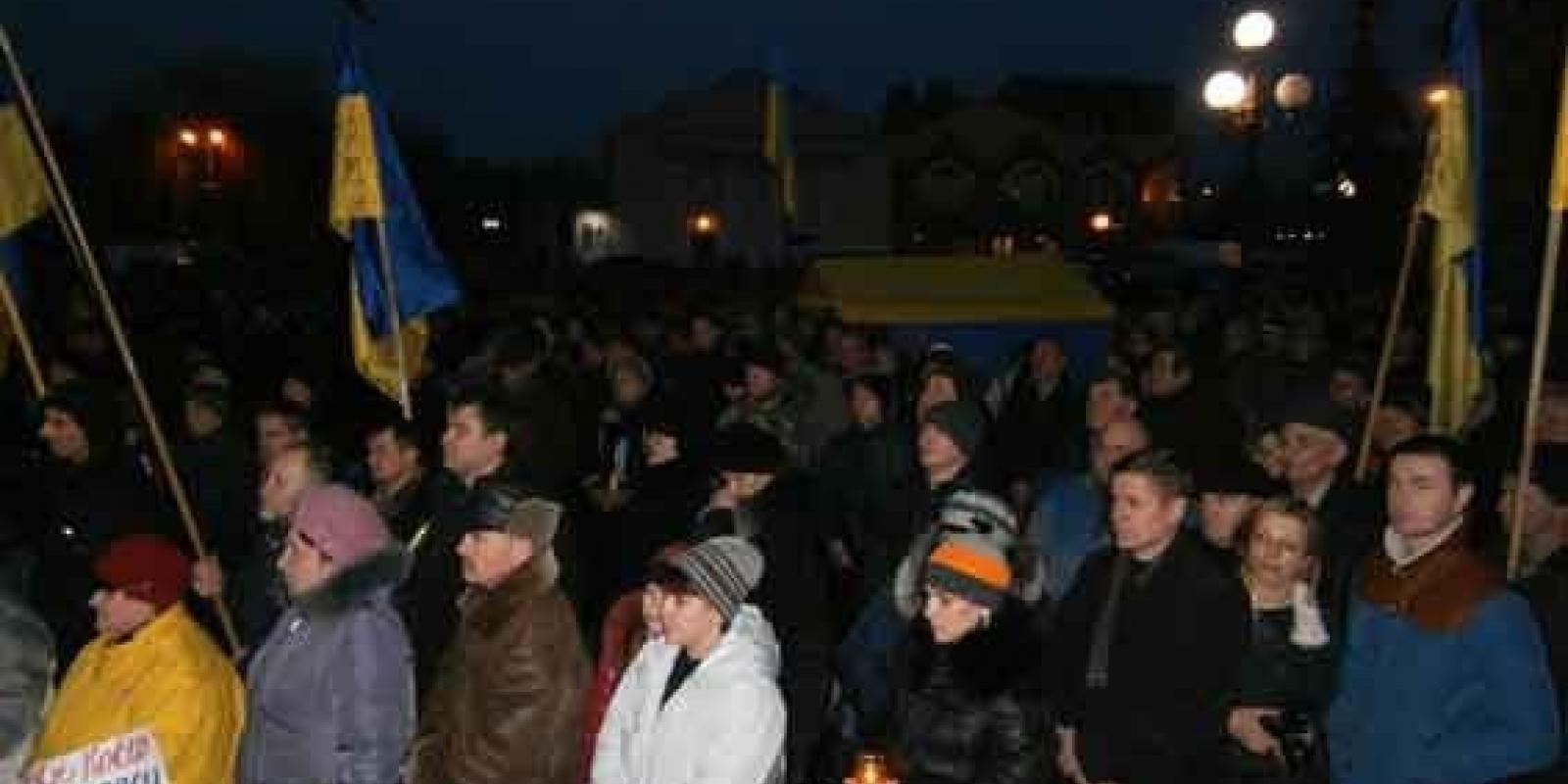 Розпочалося міськрайонне віче з молебню за загиблими останньої доби в центрі столиці України. Потім депутат міськради, голова міськрайонного штабу національного спротиву Віра Федосюк зачитала присутнім звернення до Президента України Віктора Януковича щодо врегулювання суспільно-політичної ситуації в країні, яке міський парламент зранку прийняв на засіданні позачерговій 50 сесії. Слово надали очільнику Ковеля Олегу Кіндеру, депутатам міської і районної радам, очевидцям трагічних подій в Києві, які щойно звідти повернулися. Після слів останніх заступник міського партійного осередку ВО «Свобода» Ігор Ткачук у черговий раз закликав чоловіків гуртуватися і їхати на майдан до столиці. Віра Федосюк додала, що у випадку, якщо людям нічим добиратися до головного майдану країни, в штабі національного спротиву по вулиці Степана Бандери, можуть їм допомогти туди добратися.