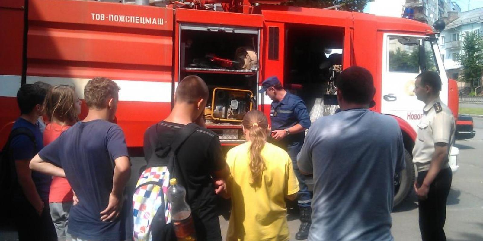 Під час екскурсії вогнеборці ознайомили маленьких гостей з умовами несення служби в підрозділі, продемонстрували пожежно-рятувальну техніку та спеціальне обладнання в дії, бойовий одяг та спорядження рятувальників.