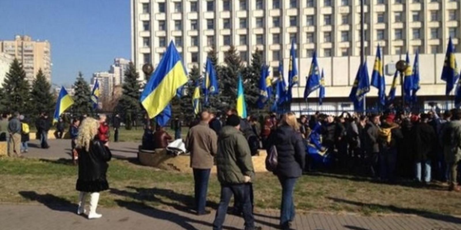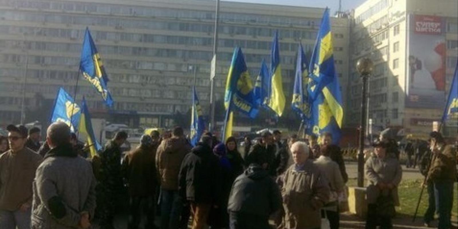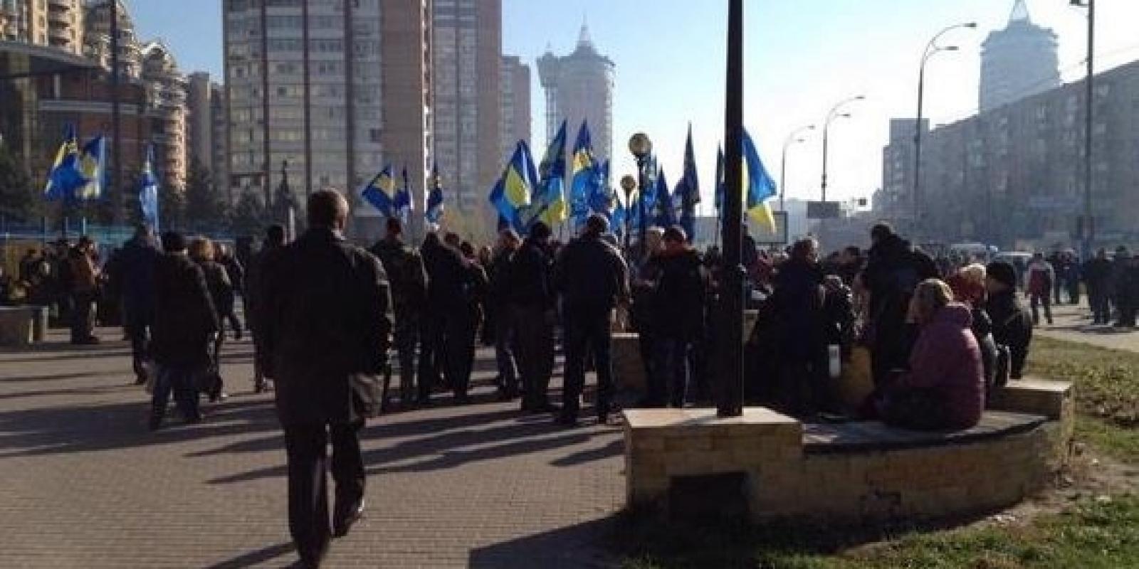Активісти, яких більше 300 осіб різного віку, заповнили всю площу під будівлею ЦВК. До мітингувальників приїхав представник партії "Свобода" Ігор Мірошниченко.