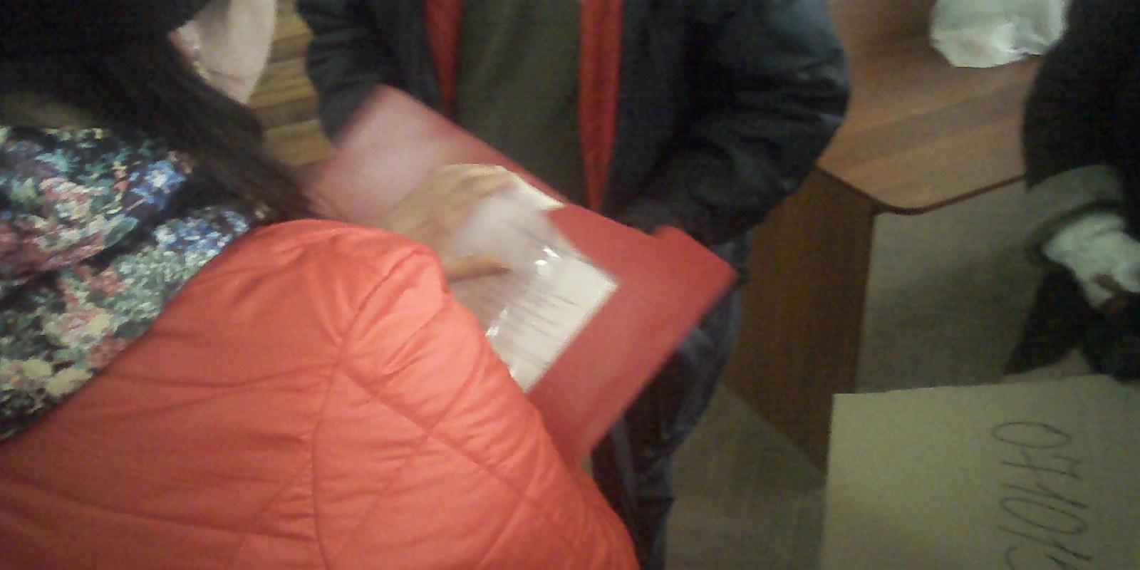 Ще одним типом порушень було здача незапакованих уточнених протоколів в ОВК. Члени ДВК приносили уточнені протоколи про підрахунок голосів у звичайних папках та файлах (фото 1). На зауваження спостерігача ОПОРИ щодо неналежного запакування документації вони відповідали, що додаткових пакетів ОВК їм не видавала.