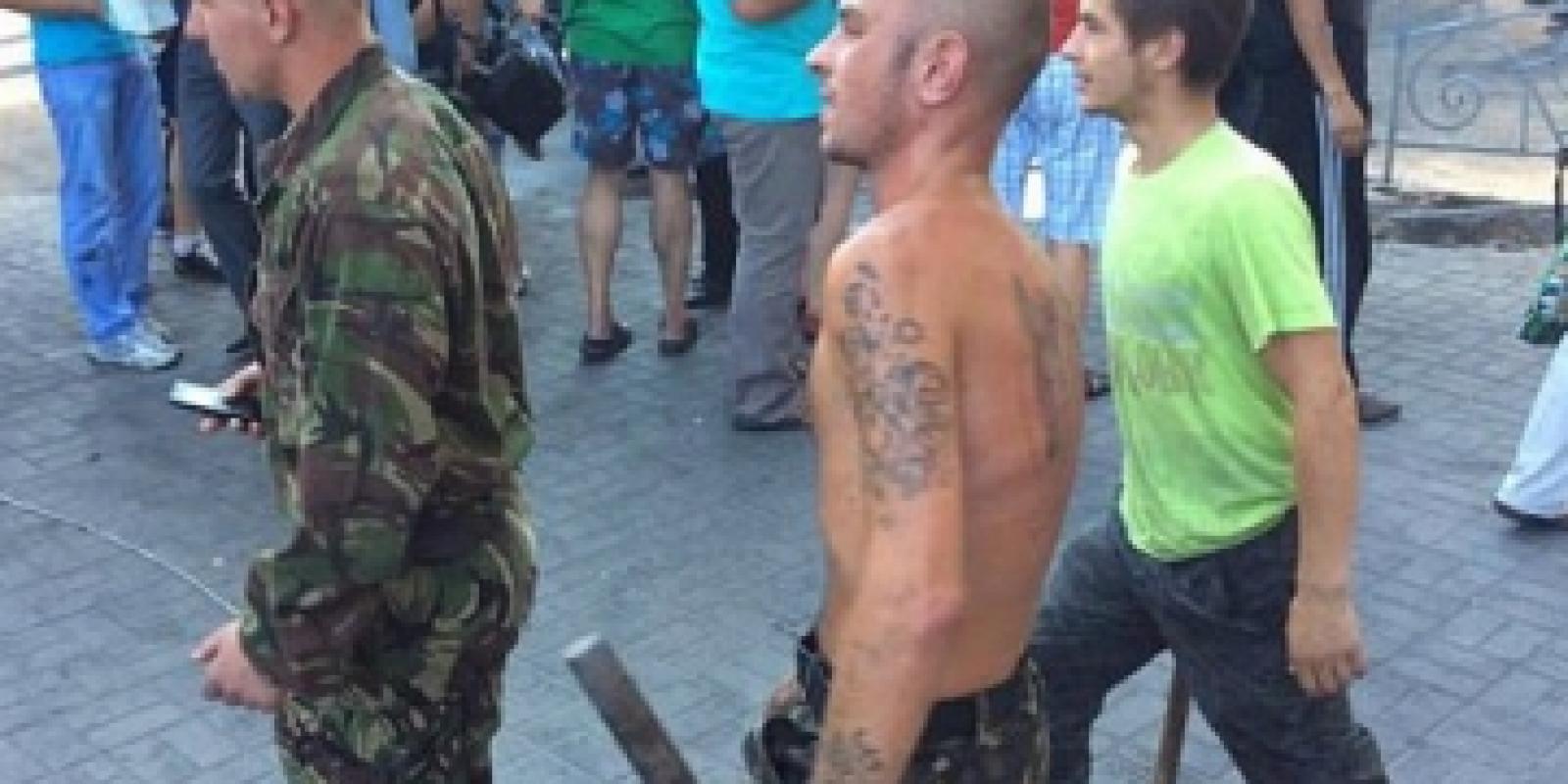 "У результаті 42 громадянина з обох угруповань було затримано. У них вилучені балаклави, бейсбольні біти, ножі, пляшки з коктейлем Молотова", - повідомляє Геращенко.