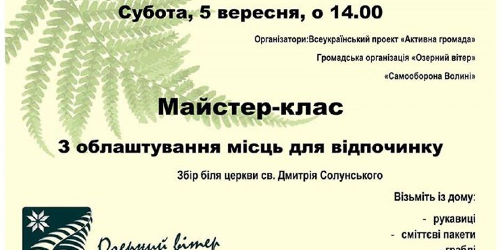 Організатори прибирання: “Самооборона Волині”, Всеукраїнський громадський рух “Активна громада”, Креативний простір “Озерний вітер.