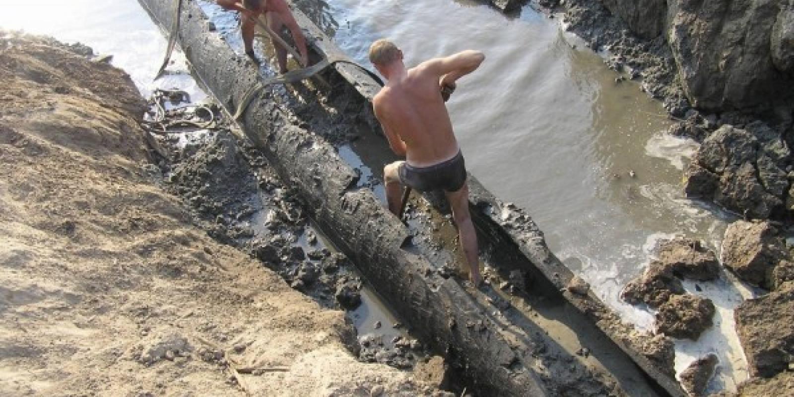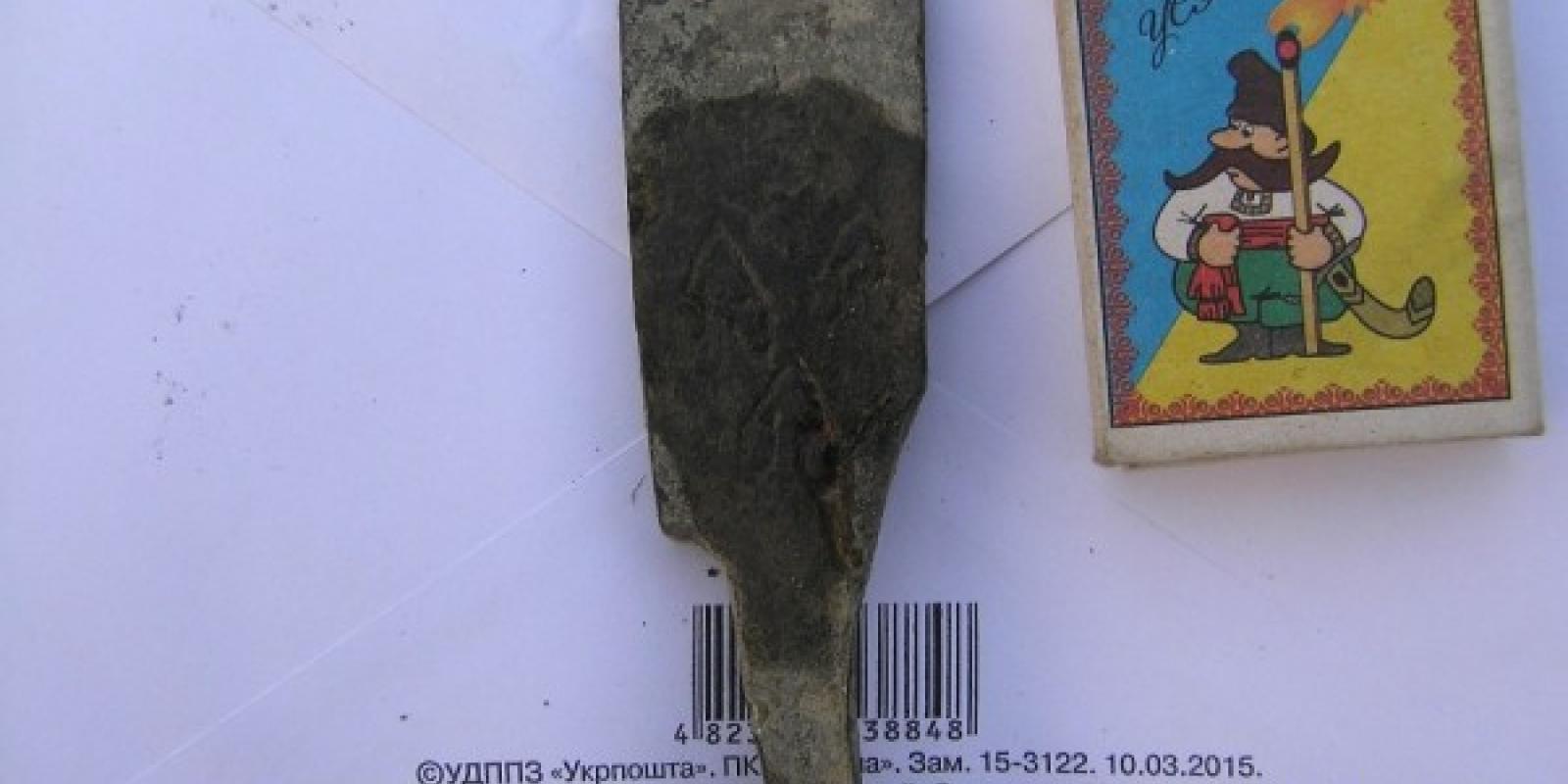 ...Довжина майже 12 метрів, стан збереження – шикарний, як для дерева. Вік встановлять пізніше. На дні човна під шаром глини, піску і намулу виявився один цікавий залізний предмет – на ньому клейма, що дуже схожі на герби князів Острозьких.