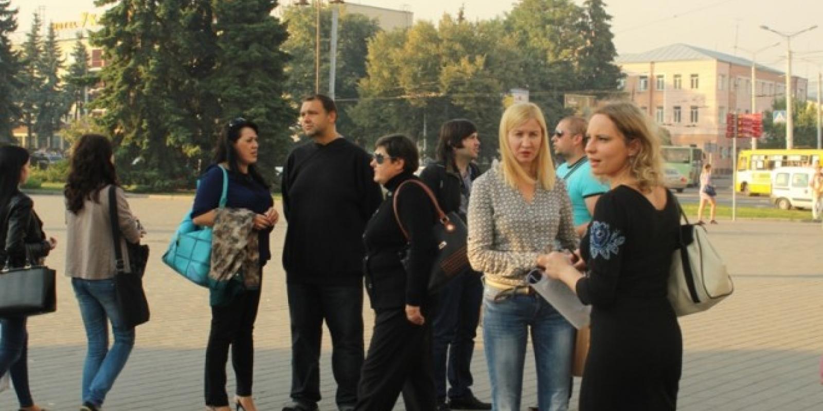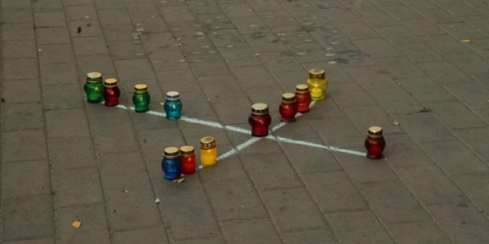 Кілька десятків медійників із лампадками в руках наприкінці робочого дня прийшли до символічного місця – фотостенду Героям Небесної сотні.