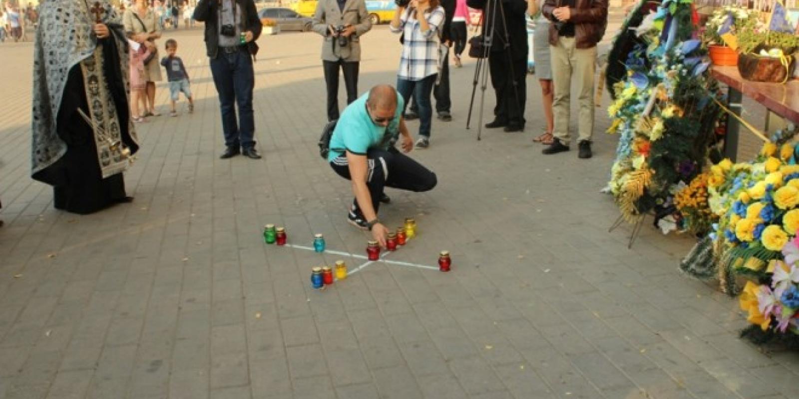 Сформувавши із запалених лампадок скорботний хрест, журналісти разом із священиком помолилися за упокій загиблих колег. Перехожі, які простували у своїх справах, також зупинялися, аби віддати шану тим, кого вже нема серед нас.