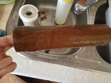 "Так от про ультра чисту воду в Луцьку. Відстань від мого будинку до водоканалу в мене 1.5 км по трасі. Щокварталу на фільтрі поліпропіленовому (тому що в системі очистки найперший) настояща "НУТЕЛА". Я зазвичай міняю його раз на місяць, але спецом, щоб показати, що буває, коли за три місяці, зняв вам фото і відео. Я мовчу про там чай і каву без розводів і плівок, про чистий чайник і воду в ньому навіть коли там 100 г грієш, кововарку і т.д. Все це прозоре і чисте, ніяких накипів. Плюс економія на моршинській без газу".