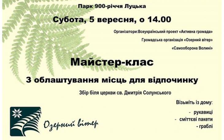 Лучани мають нагоду додати краси рідному місту. Організове прибирання парку 900-річчя Луцьк прибирання 900-річчя 1 перегляд Читати далі